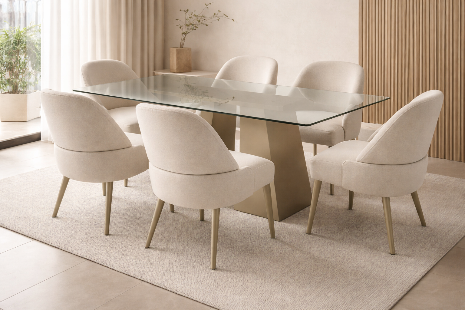 El Comedor Kaziani está diseñado para crear atmósferas cálidas y memorables. Su base de madera moderna aporta una sensación acogedora y cercana, mientras el vidrio templado añade claridad, amplitud y una estética limpia que envuelve el espacio con serenidad.