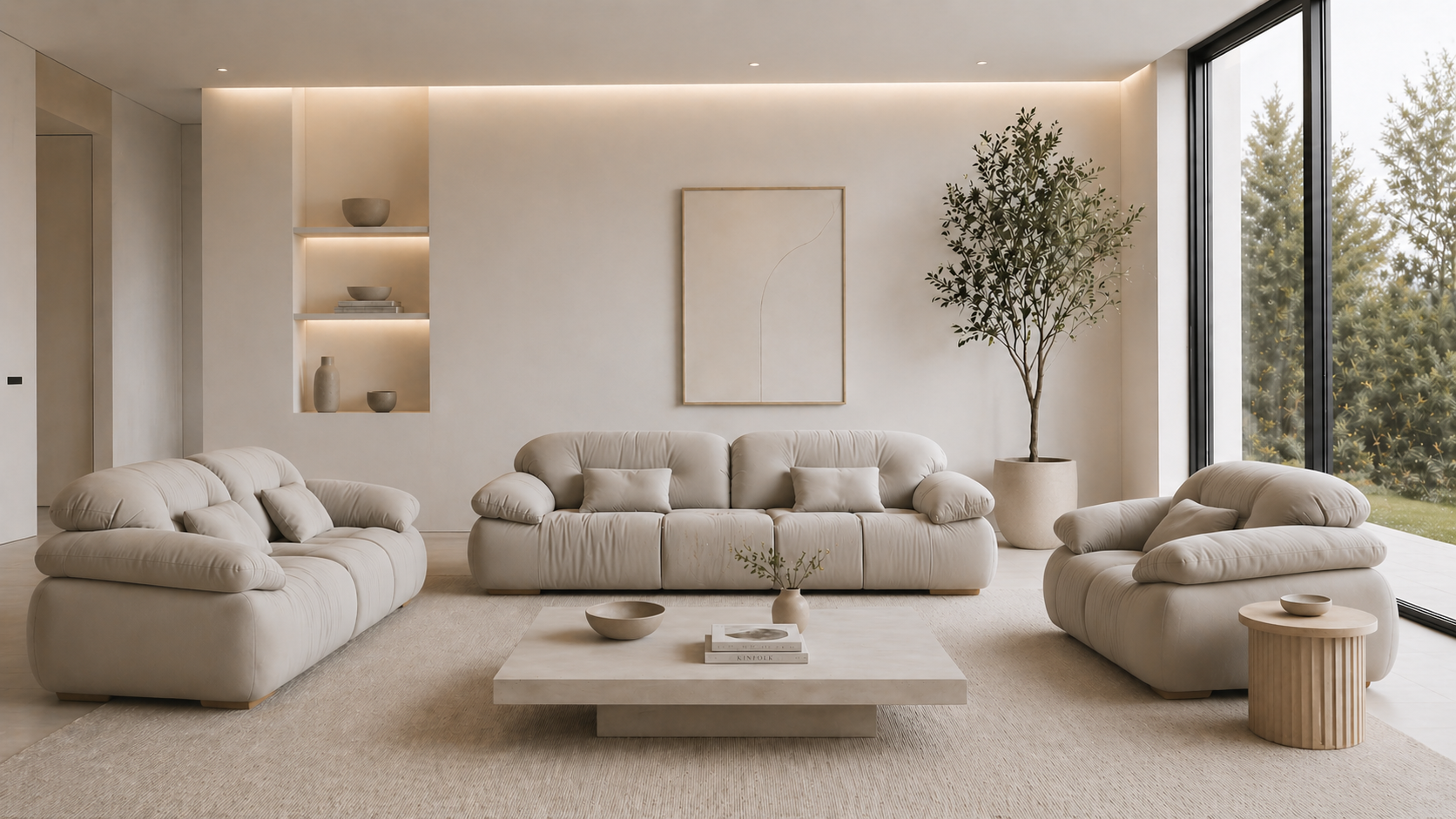 Sala Enna envuelve con suavidad absoluta, ofreciendo un confort profundo que transforma cada momento en una experiencia placentera.