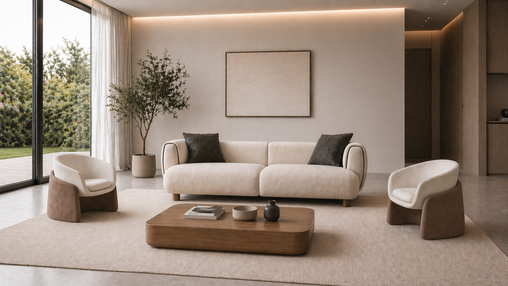 Sala Izen se percibe como una pieza que trasciende lo cotidiano, donde cada línea encuentra su lugar con una naturalidad impecable. Su presencia no busca imponerse, sino definir el ambiente con una elegancia que se descubre en los detalles.