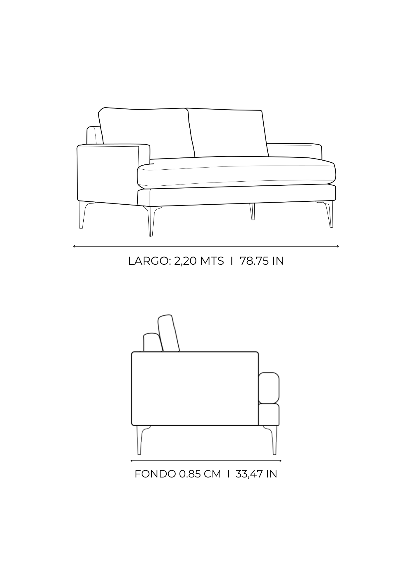 Sofá de estilo moderno y detalles minimalistas, aporta sofisticación a cualquier espacio, su estructura elegante, acompañada de un acolchado ergonómico, garantiza tanto comodidad como un toque de distinción.
