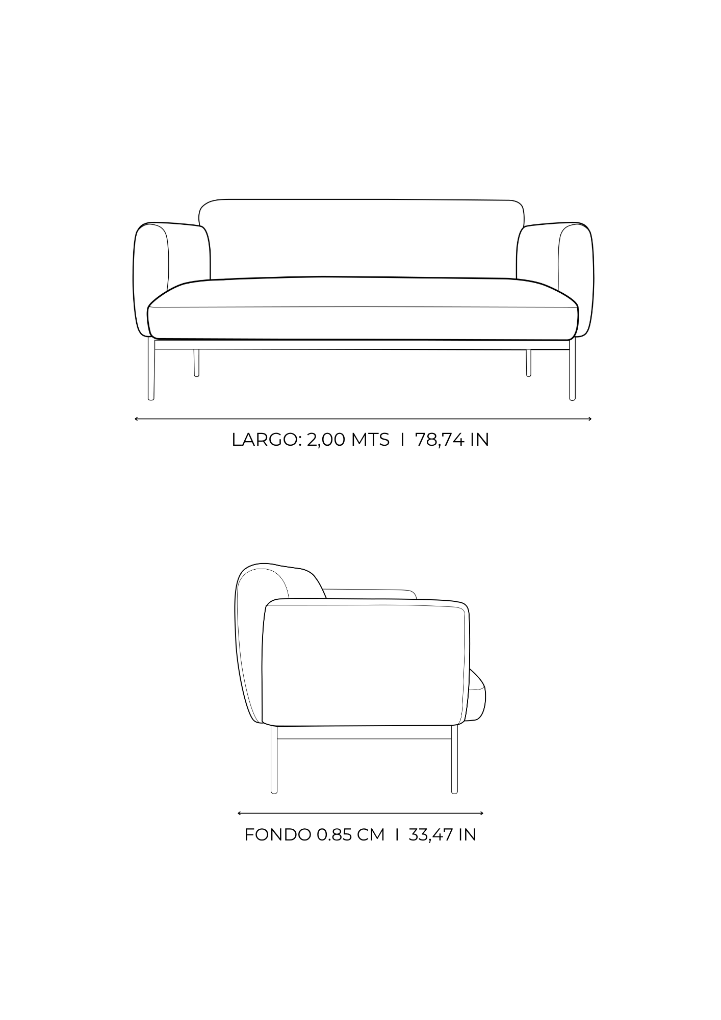Celia, un sofá de líneas suaves, espaldar fijo y brazos curvos. Estilo moderno con toque orgánico y sofisticado.