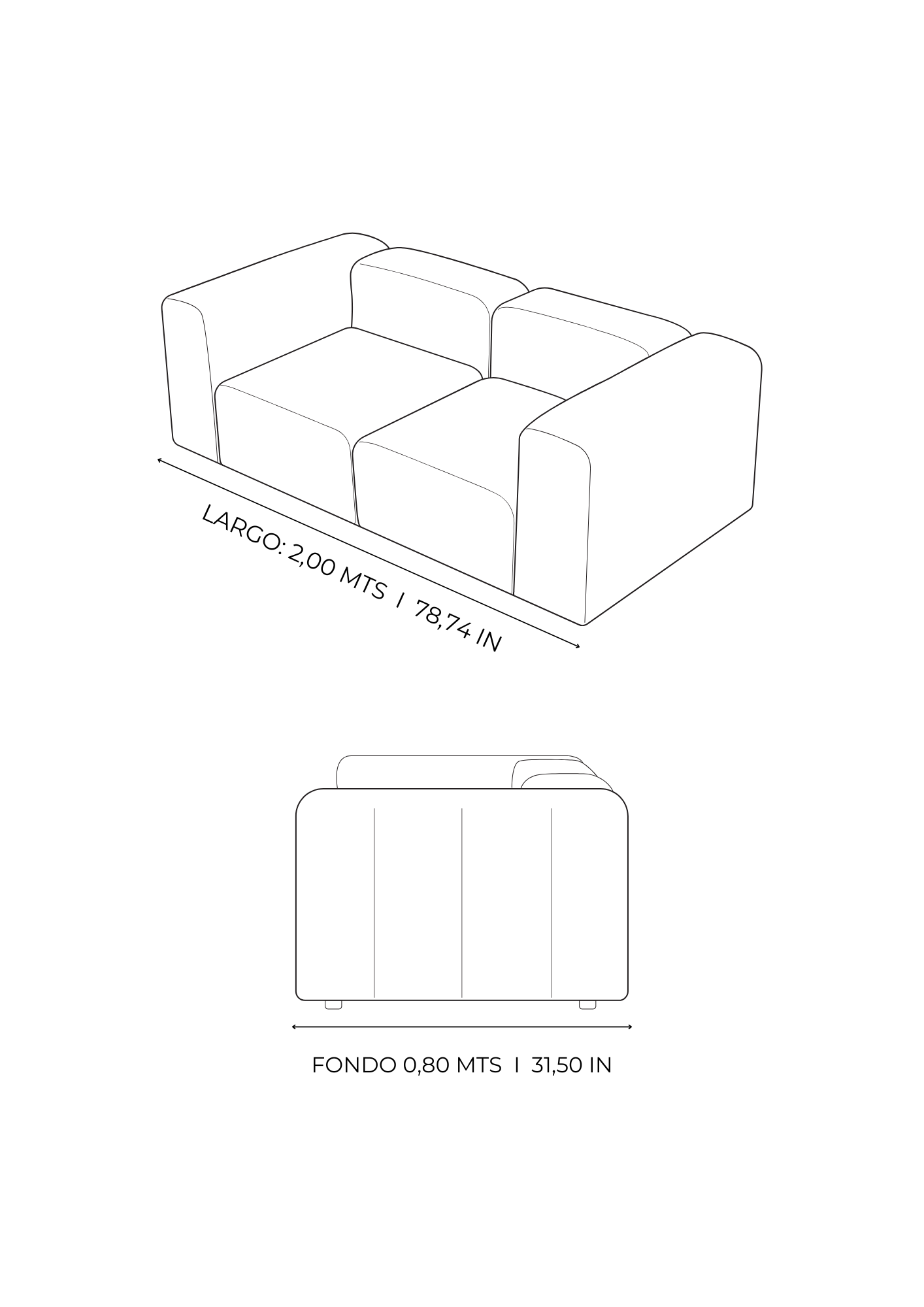 Conformado por dos módulos, este sofá brinda la flexibilidad necesaria para adaptarse a cualquier sala.
