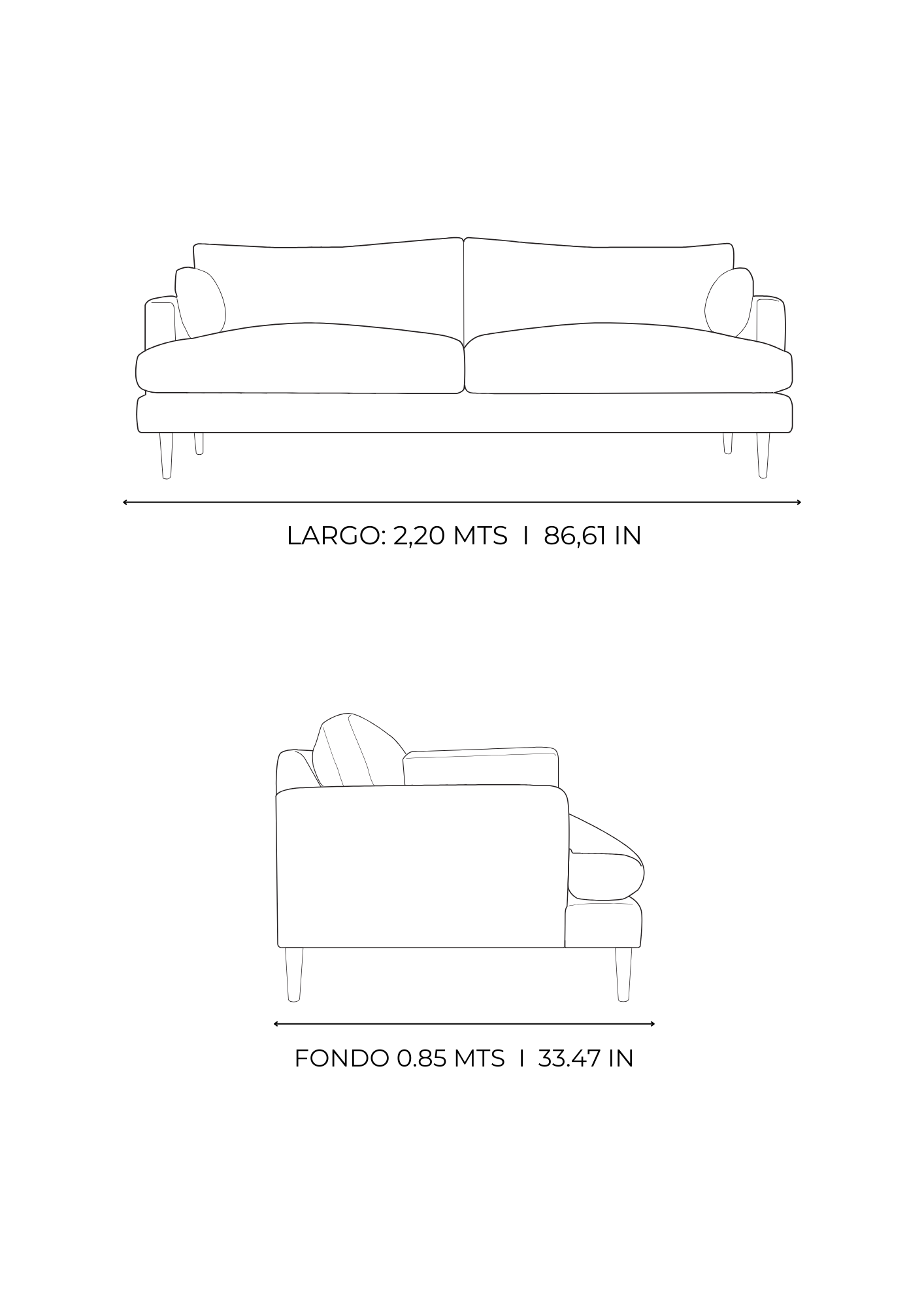 | 3 puestos | 220 cm I 86,61in |