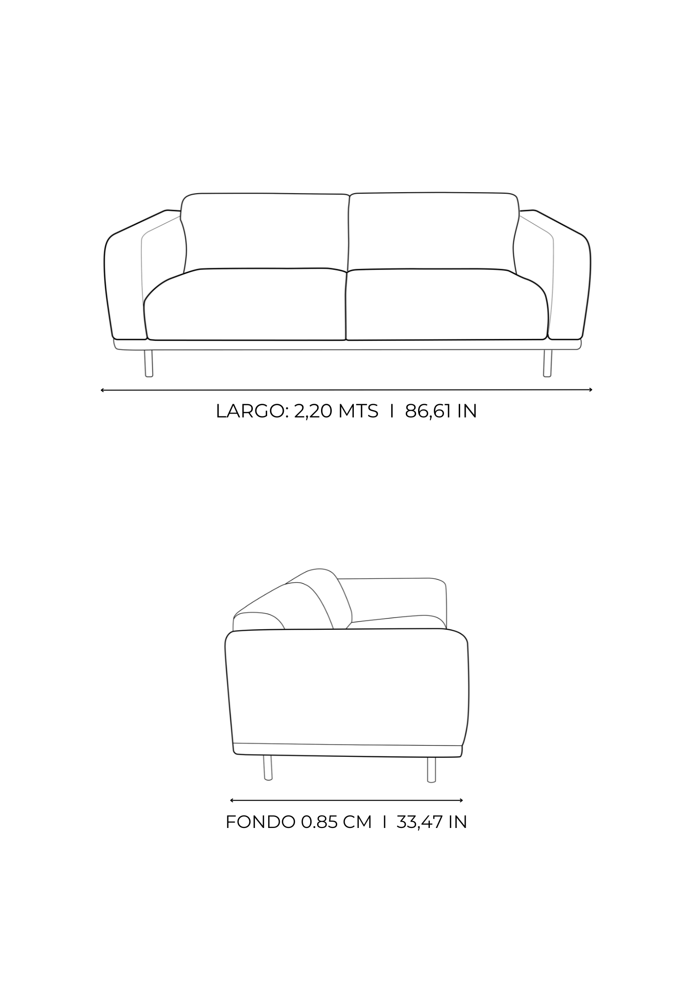 | 3 puestos | 220 cm I 86,61 in |