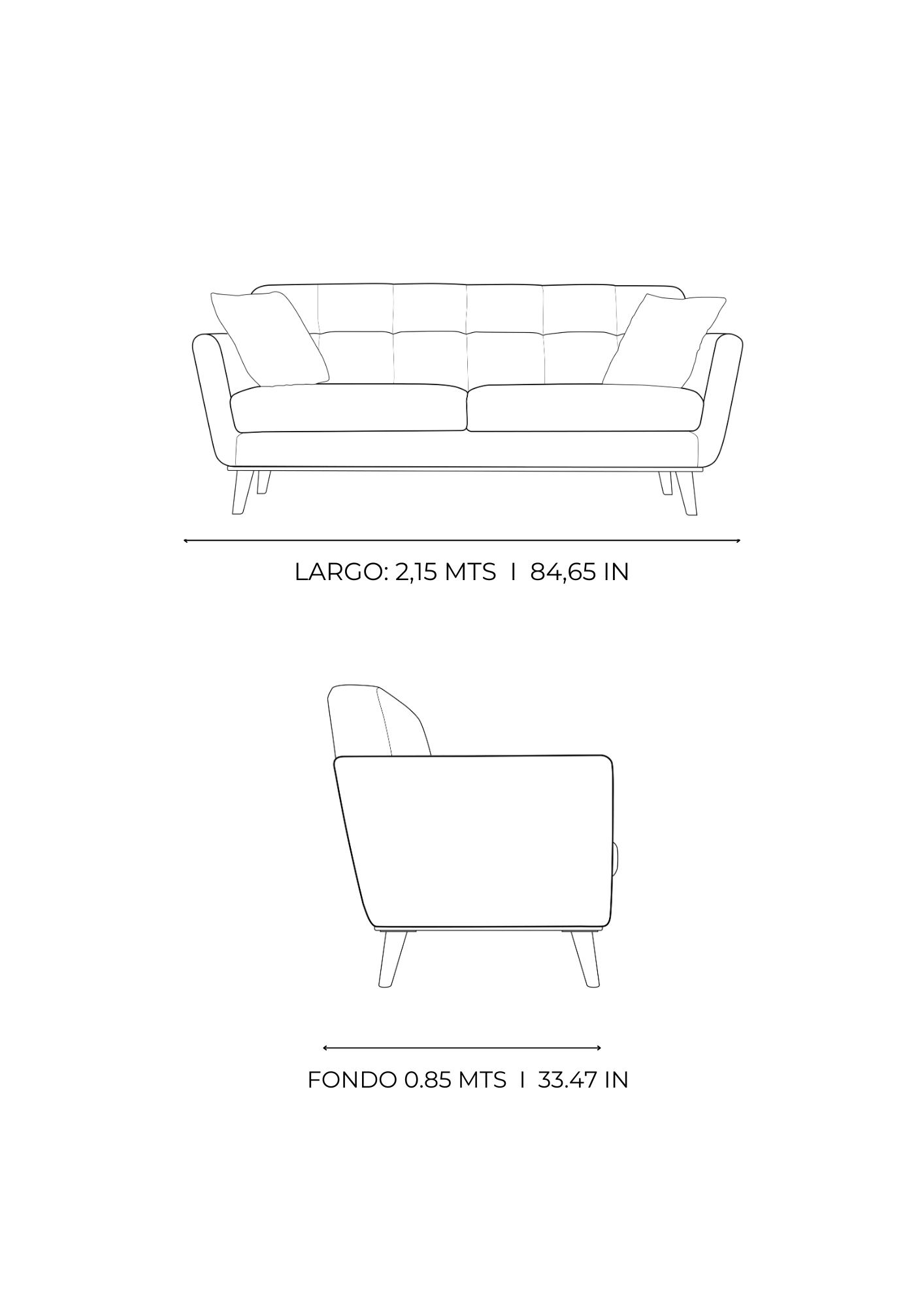 Con un diseño ergonómico y elegante, el sofá Zenith ofrece personalización total en tela y tonalidad. Su estructura elevada con patas de madera crea una sensación de amplitud, ideal para todo tipo de espacios.