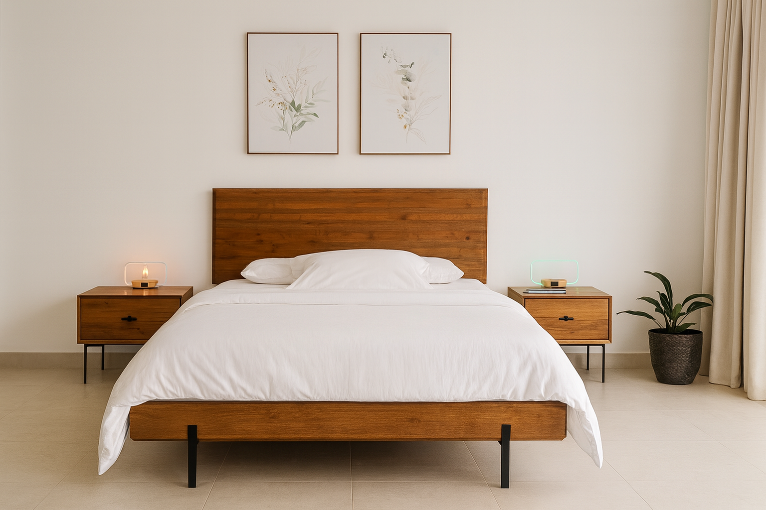 Sumérgete en un sueño de elegancia y durabilidad con nuestra cama moderna, diseñada para combinar la calidez de la madera maciza con la robustez de las bases metálicas de alta resistencia.