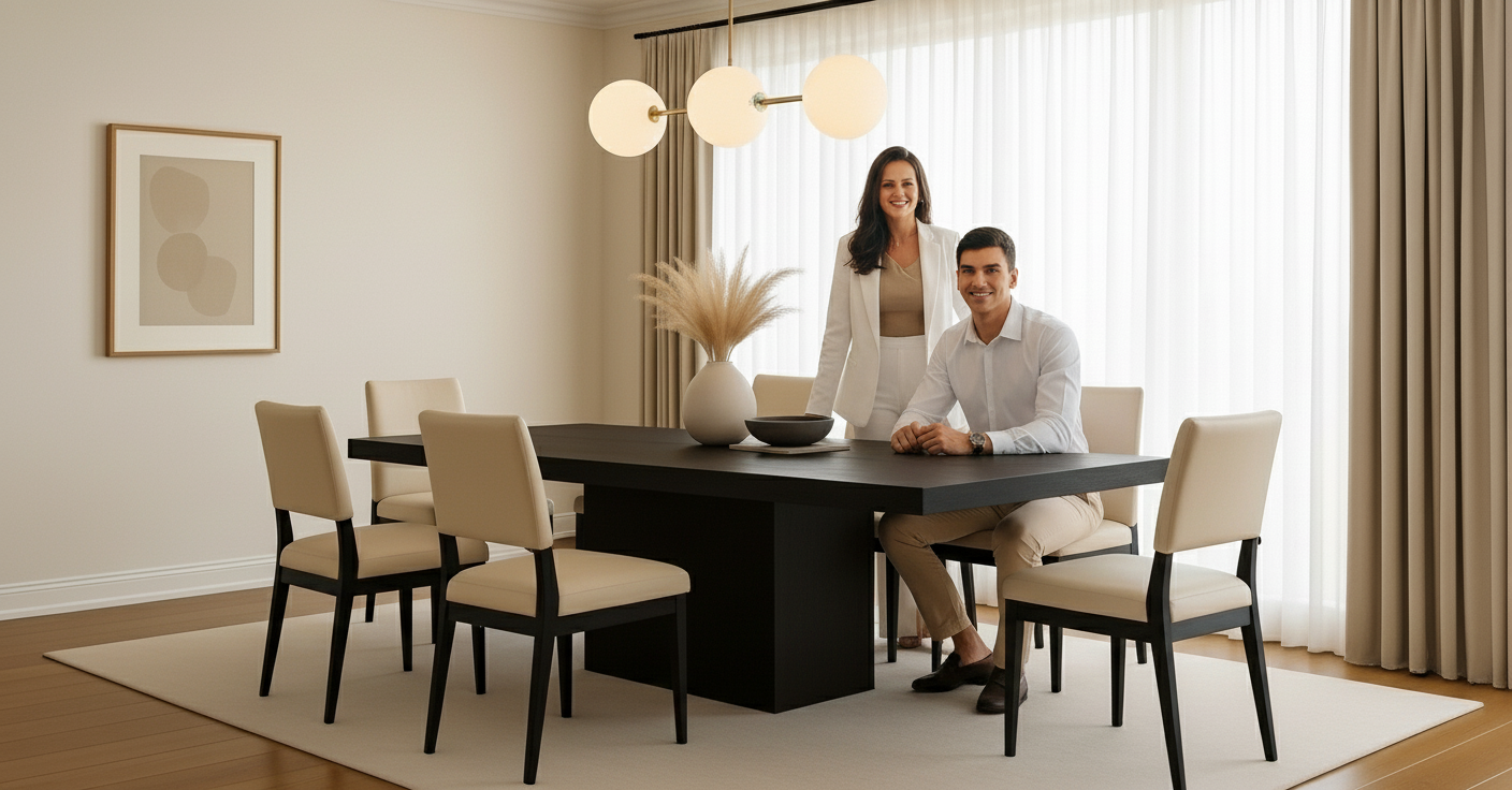 Un comedor elegante y armónico que envuelve cada encuentro con una atmósfera íntima, cálida y sofisticada.