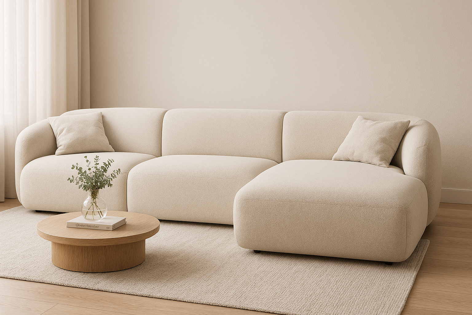 Vive la experiencia de un sofá contemporáneo que refleja sofisticación en interiores con chaise longue para tus momentos de relax