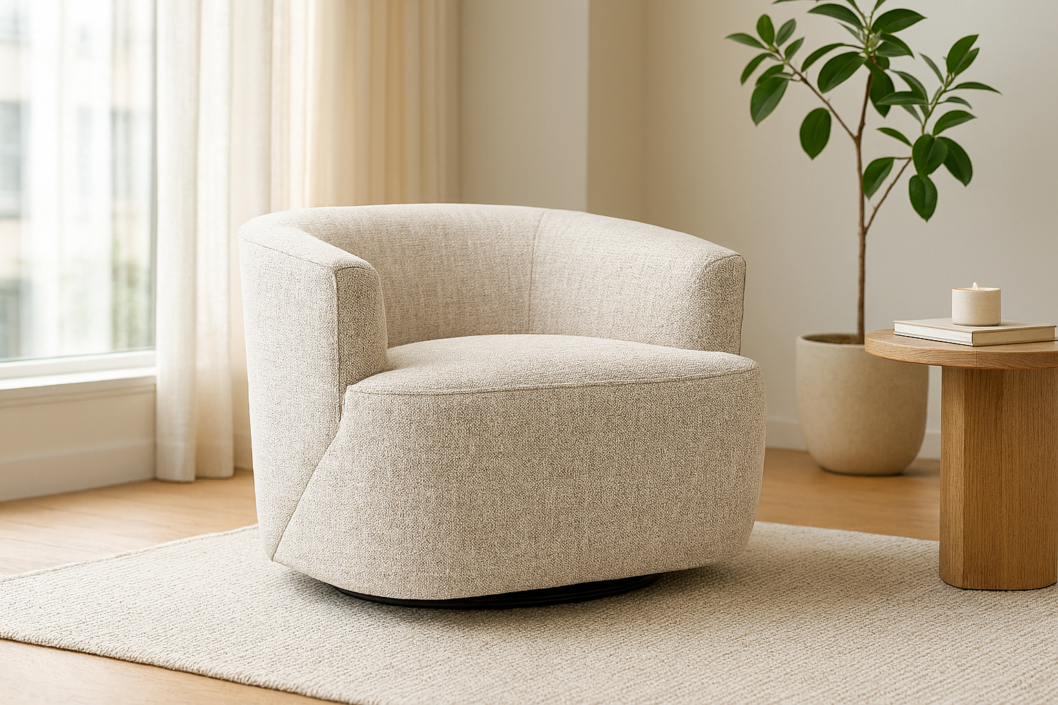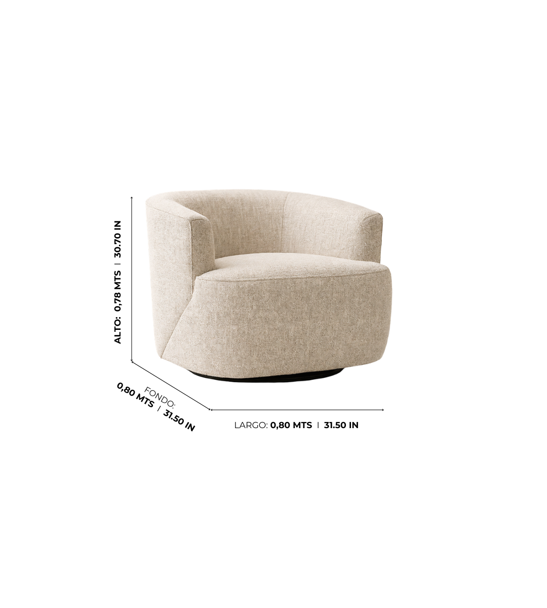Su función giratoria añade versatilidad y estilo a tus espacios, permitiéndote adaptarla a tus necesidades con facilidad, elige entre una variedad de tapizados y acabados de madera para que se integren perfectamente con tu decoración.