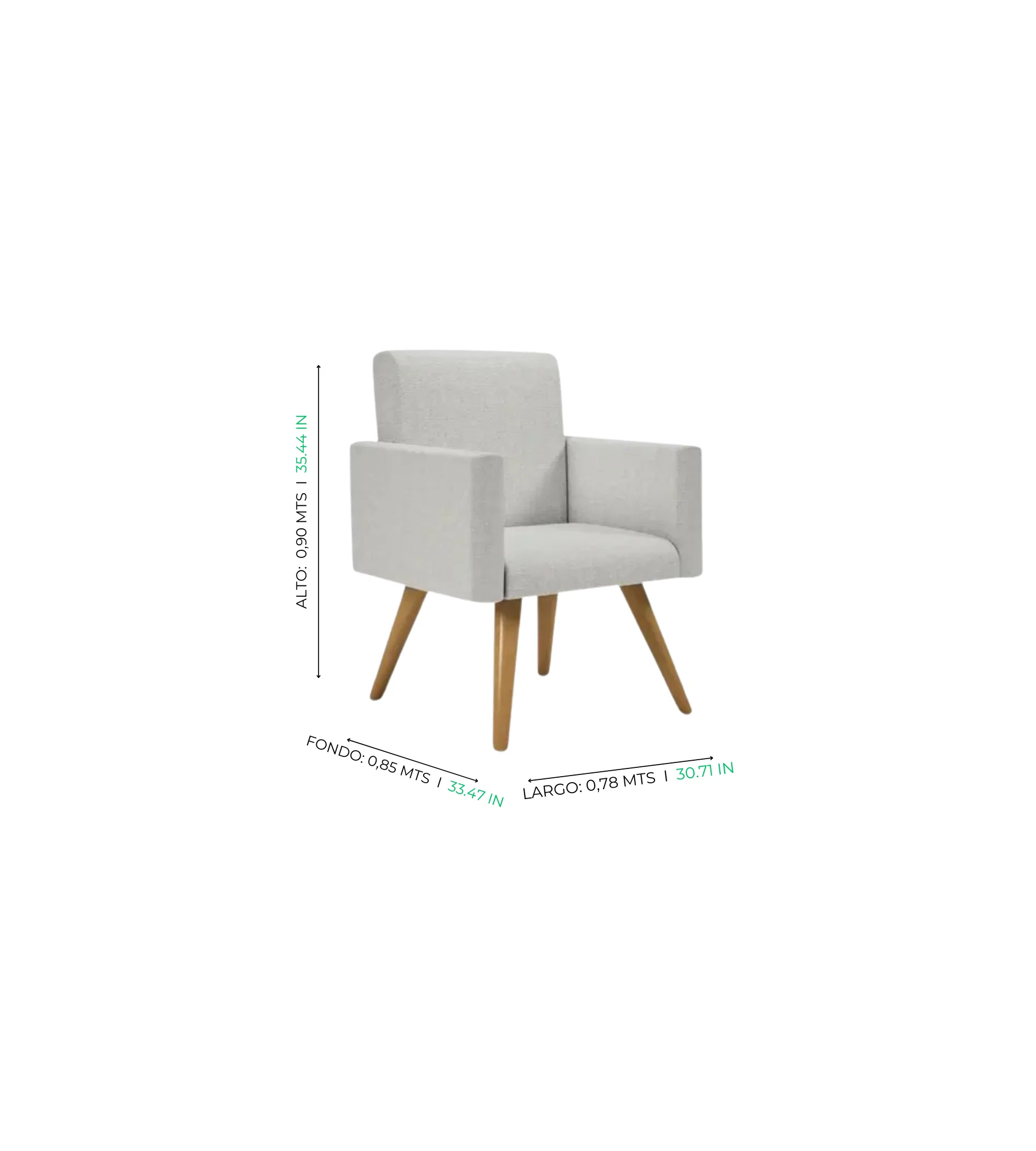 La Poltrona Lumi, con base de madera, es una pieza distintiva que fusiona confort y estética moderna.