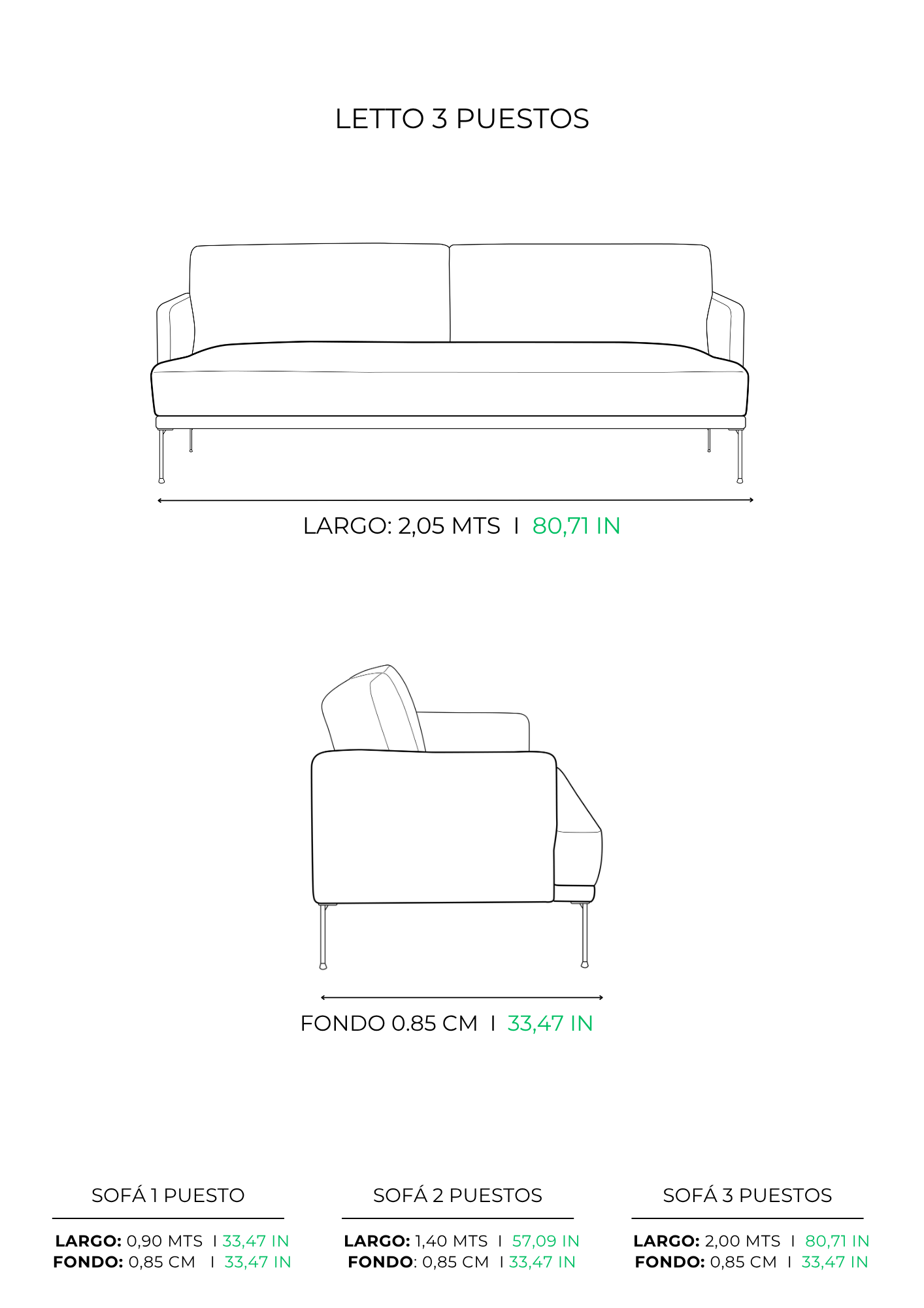 Sofá Letto lineal de diseño estilizado. Elegancia de día, confort de noche. Ideal para espacios modernos que requieren funcionalidad sin perder estilo.