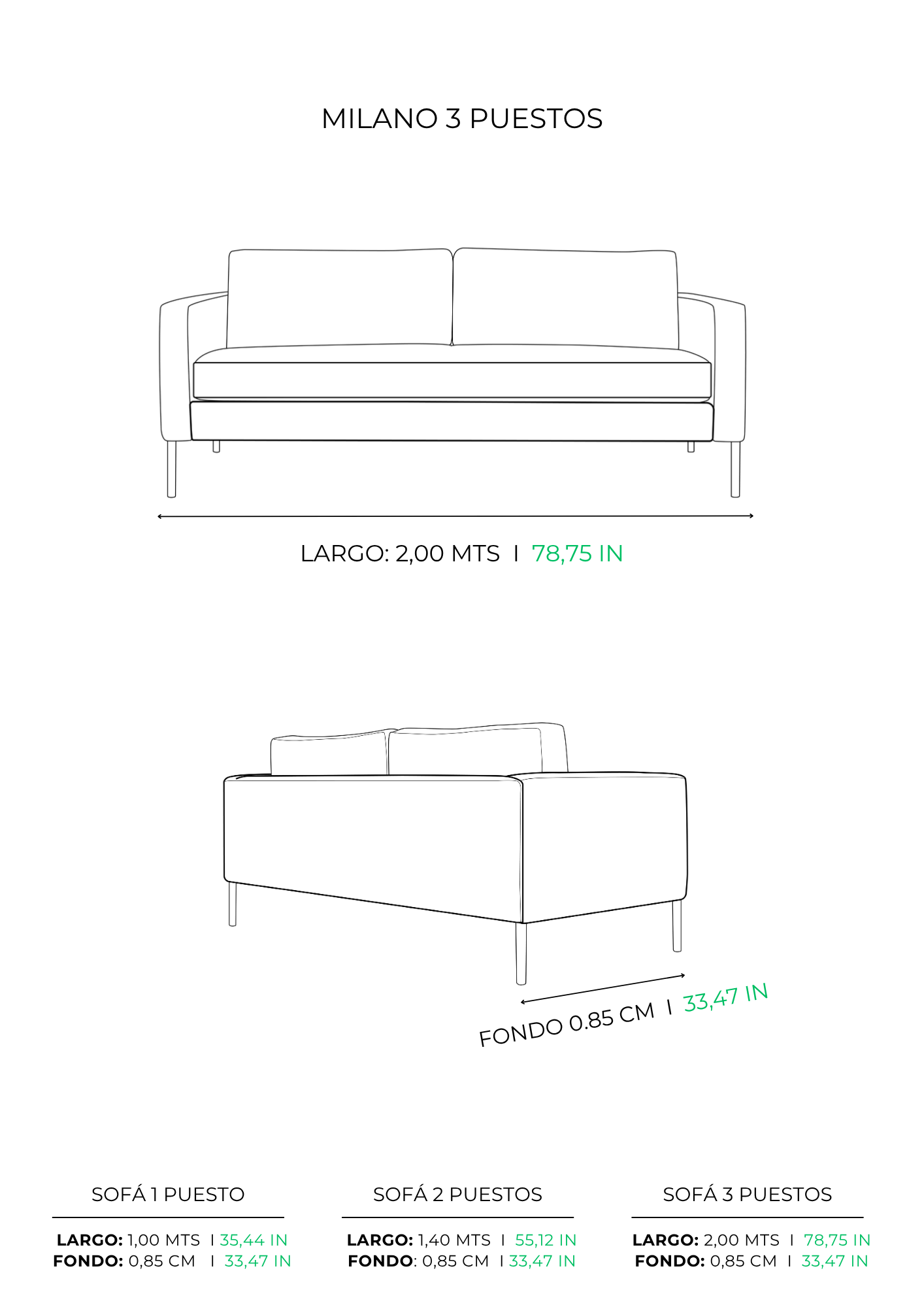 Milano es un sofá que habla en susurros de elegancia, su estructura limpia y proporciones equilibradas revelan una silueta moderna que se integra con armonía en espacios contemporáneos.